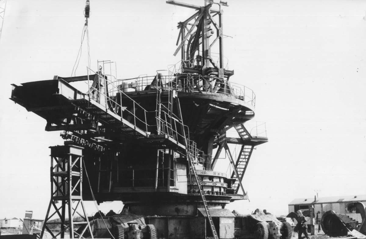 Den Bau des Wortes hatte ich mir als Meisterschülerarbeit vorgenommen. Die Lausitzer Braunkohle AG war wohlwollend und die Zeit der Wende machte es möglich. Nach einem Behördenmarathon mietete ich ein Zimmer in der Nähe des Tagebaus und erschien ein paar Monate lang pünktlich zur Schicht. Die Männer der Brigade wurden, während der Bagger schrumpfte und verschwand und die Buchstaben entstanden, arbeitslos.