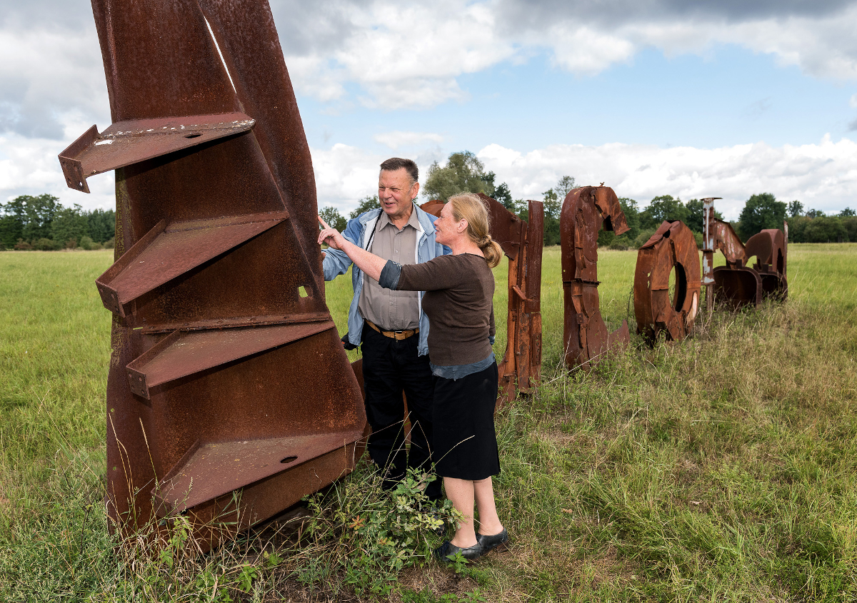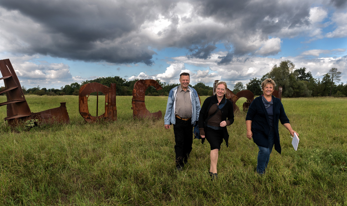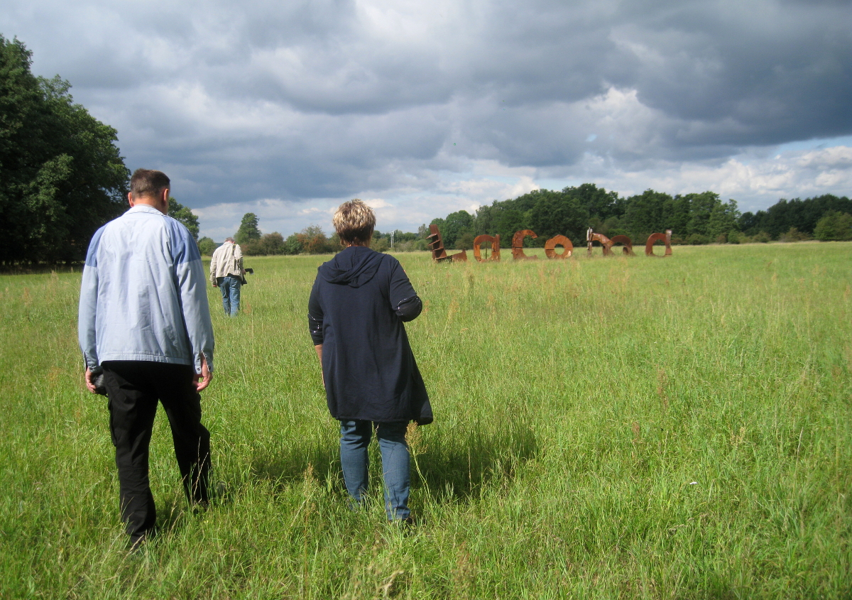Die Frauen der Aggrargenossenschaft Drebkau nennen die Fläche, auf der das Wort steht, liebvoll „unsere Lacoma-Wiese“ und mähen mit dem Trecker seit nun 30 Jahren drumherum. Organisierte Ausflüge zur Wort-Skulptur auf Anfrage.