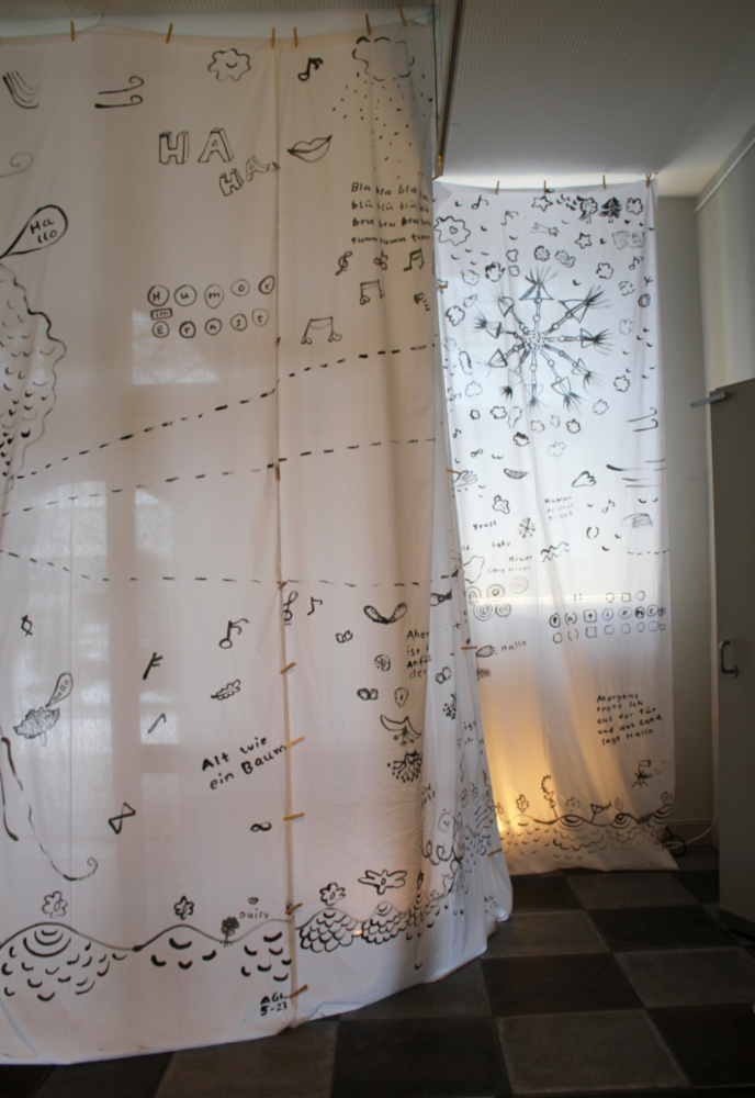 Acryl auf Batist. Text: © Annett Glöckner und Zitate. gefördert von der Stadt