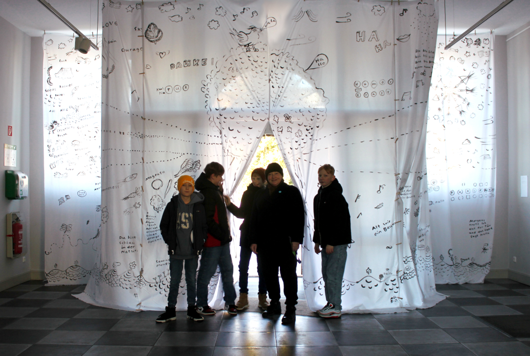 Age of Aquarius. 2023. Textilarbeit. Altes Gymnasium Neuruppin. 11,20 x 3,70 m.