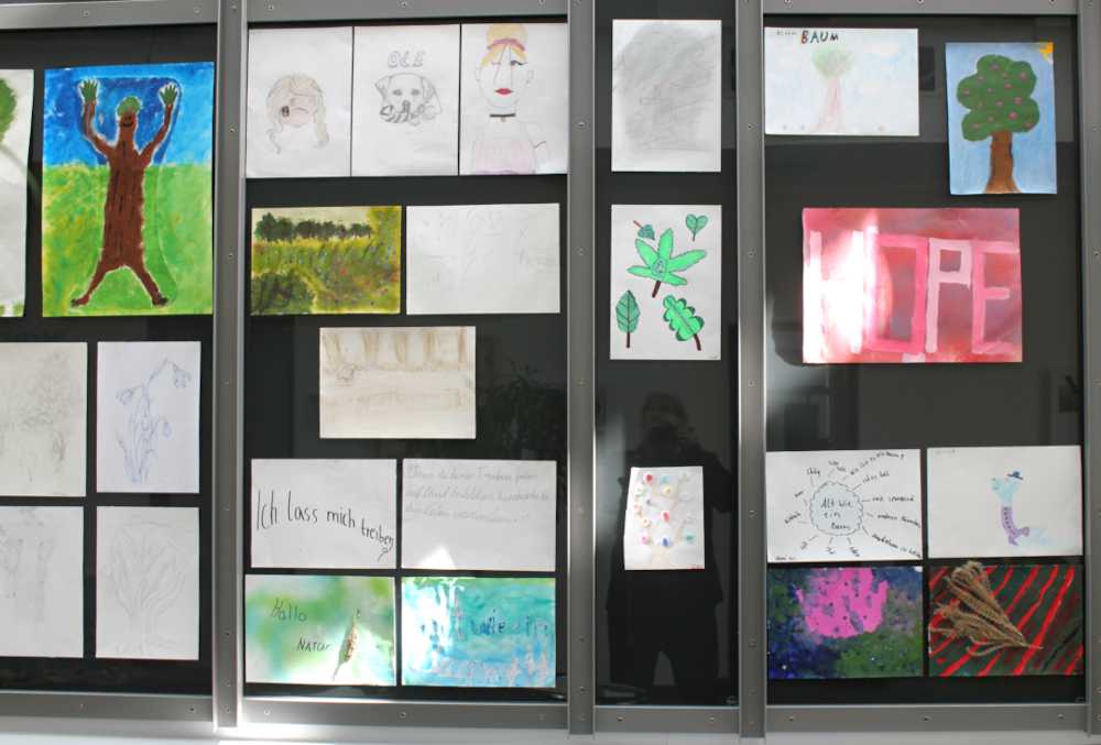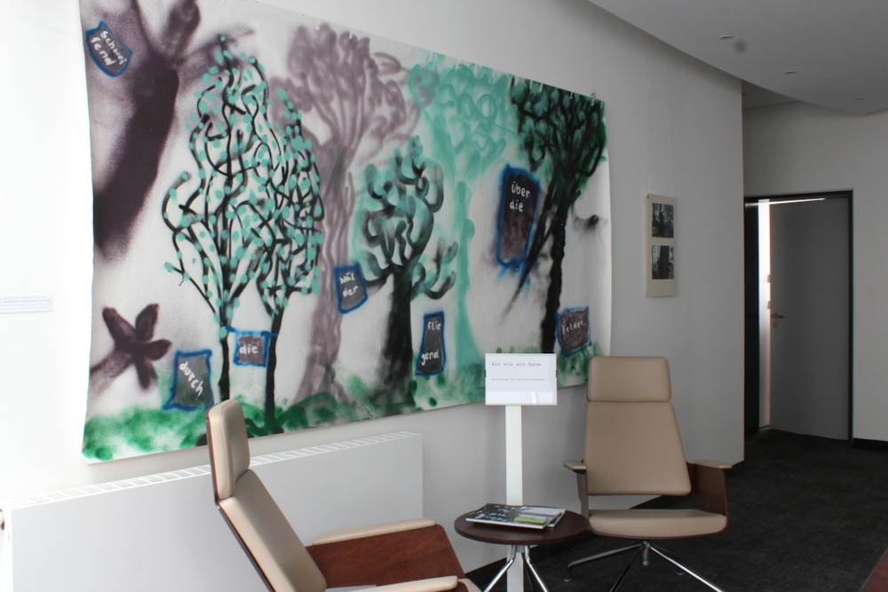 Alt wie ein Baum. 2024. Ausstellung in der Hauptfiliale der Sparkasse Ostprignitz-Ruppin am Fontaneplatz in Neuruppin. Buch- und Ausstellungsprojekt zu ihrem 175. Geburtstag mit Schülerinnen und Schülern der Evangelischen Schule Neuruppin und der Künstlerin Annett Glöckner unterwegs im Landkreis und im Max-Atelier.