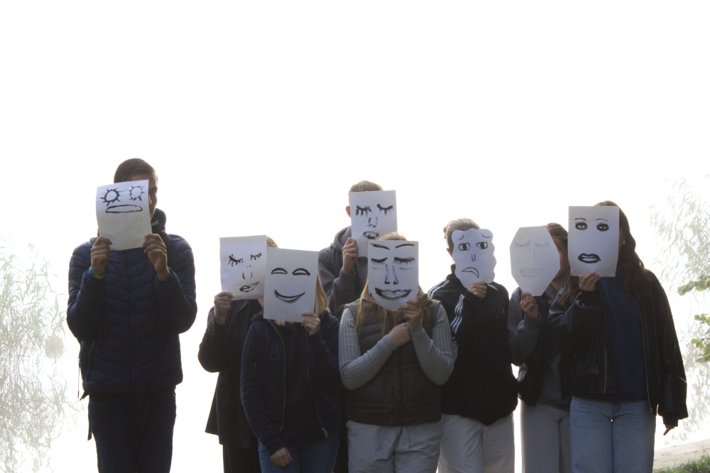 Walk im Nebel in Neuruppin. Schüler*innen der 12. Klassen bauten Masken für eine Schwarz-Weiß-Session.