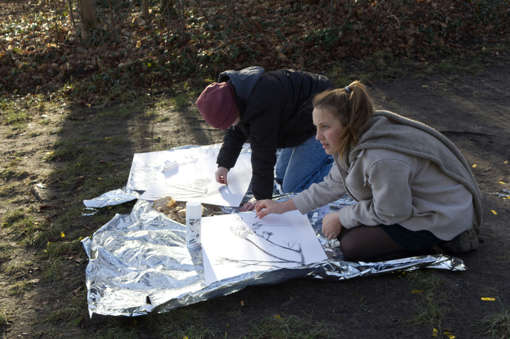 Exkursion Nr. 4: Schüler*innen der 12. Klassen zeichneten und fotografierten am Ufer des Rhin in Fehrbellin.