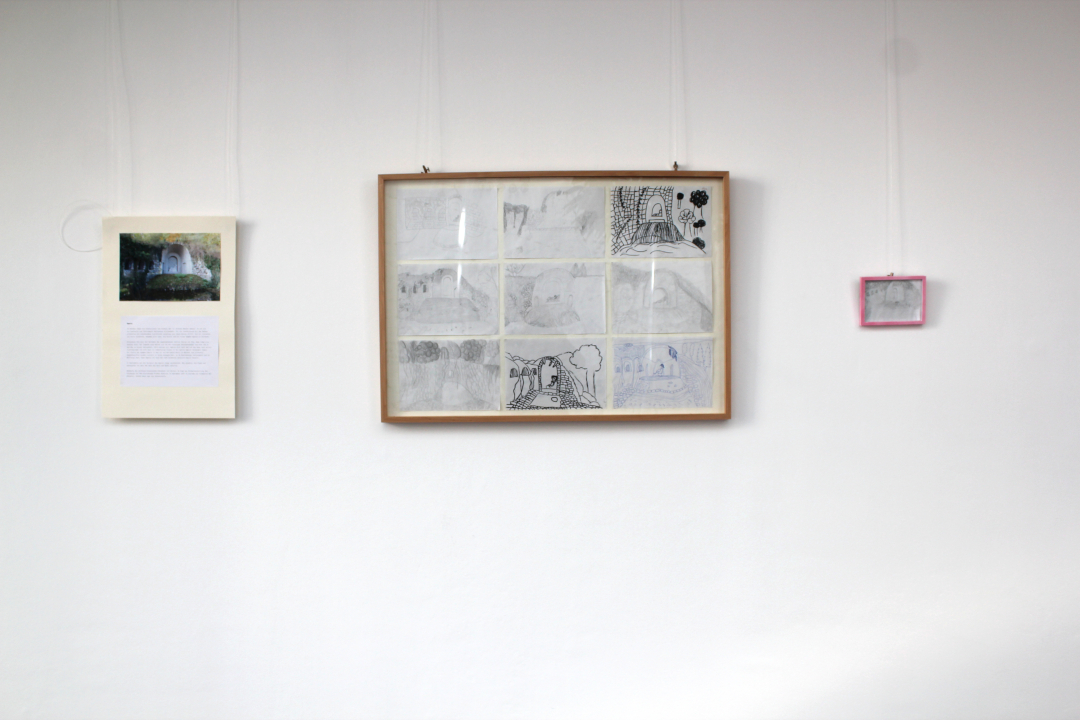 Egeria. Zeichnungen der Nymphe in der Grotte in Rheinsberg nach einem Foto von der Exkursion, Schülerinnen und Schüler 12. Klasse