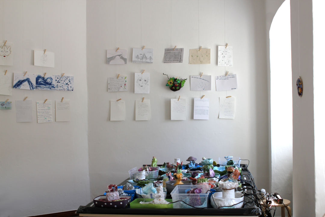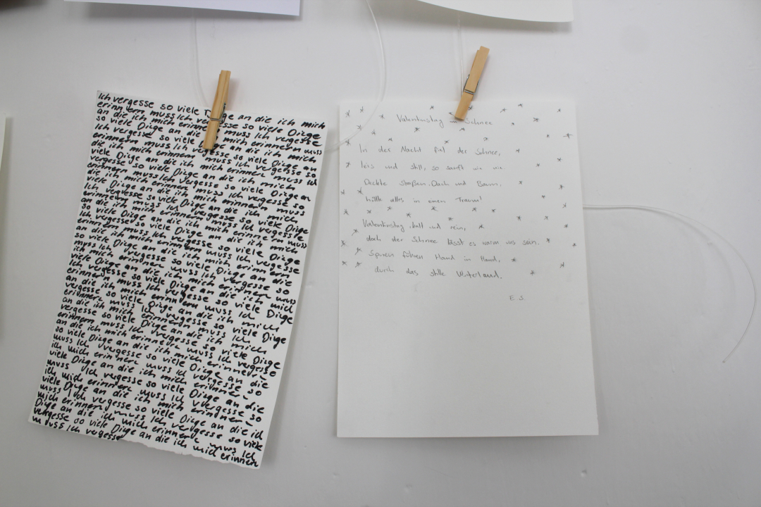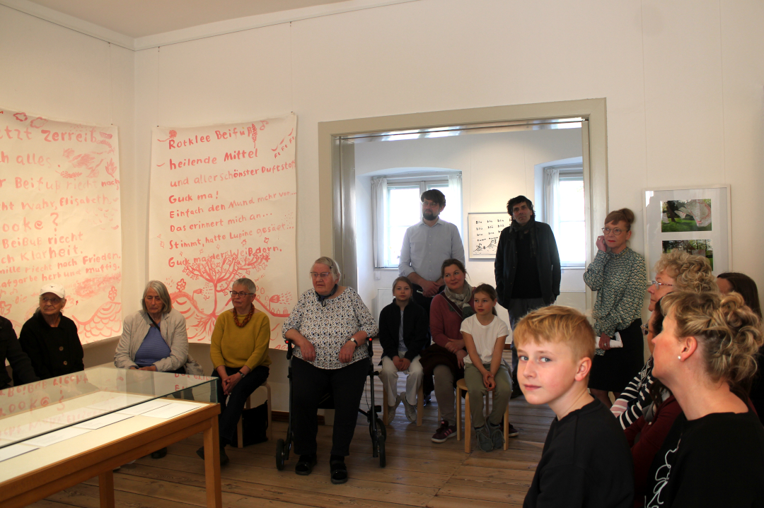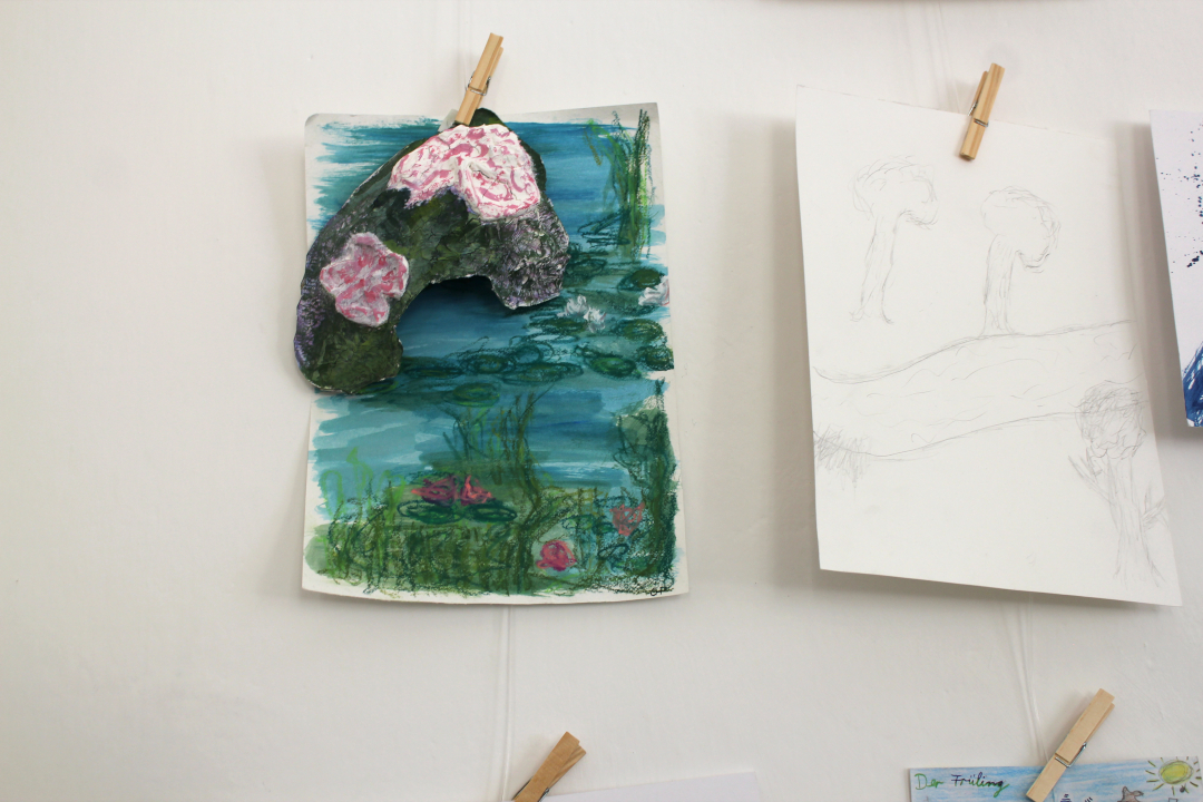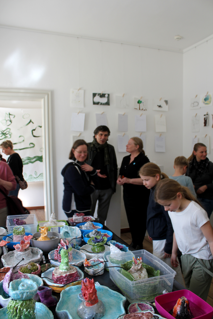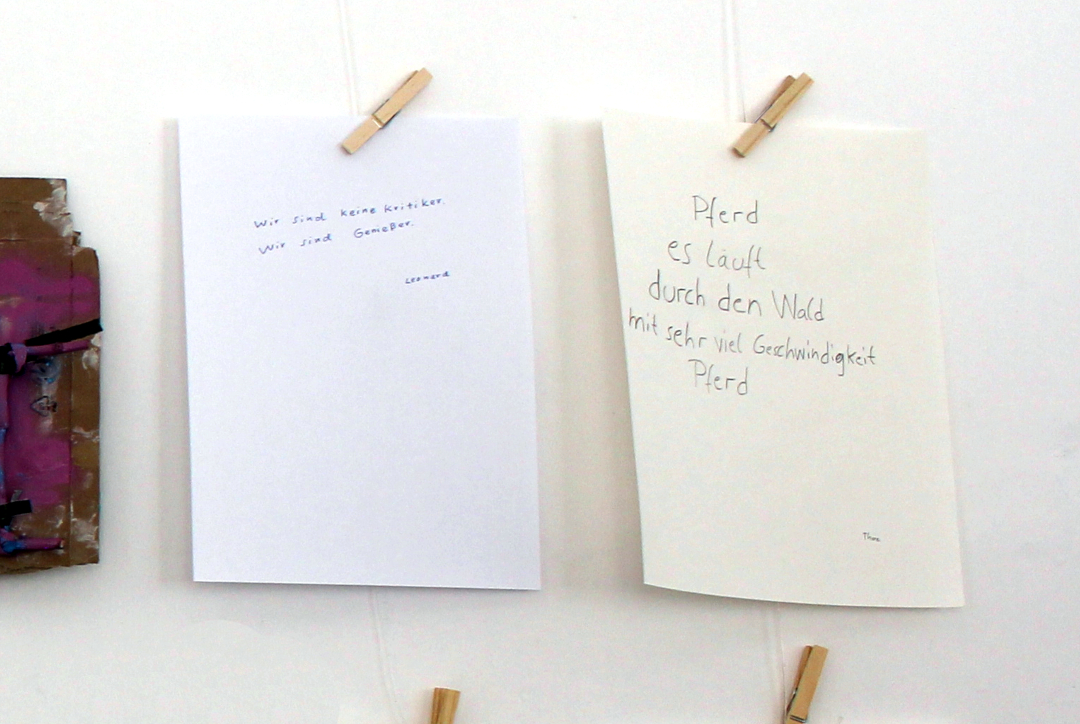 Hallo Natur! Hallo Mensch!. 2025. Kurt Tucholsky Literaturmuseum Rheinsberg. partizipative Rauminstallation, Schuljahres-Projekt, aus bildnerischen Arbeiten und Dichtung von Schülerinnen und Schülern der Evangelischen Schule Neuruppin, im Rahmen meiner Einzelausstellung Dialoge. innerhalb Max – Artists in Residence an Schulen in Brandenburg