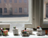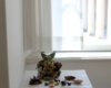 In der Mitte auf einem großen Tisch plätschern 32 Zimmerbrunnen miteinander und dieser Sound ist auch