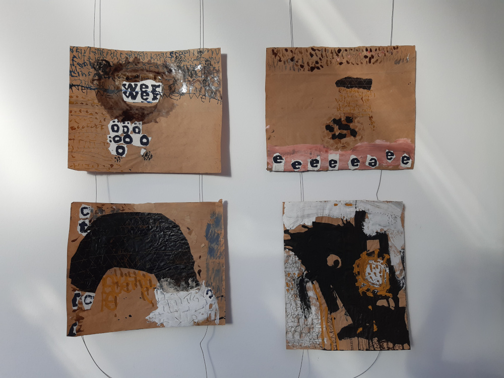 Gedanken am Ende einer Ehe. 1991. 1-4. Serie. á 40 x 46 cm. Acryl, Tusche, Bleistift, Schellack, Plakatreste,