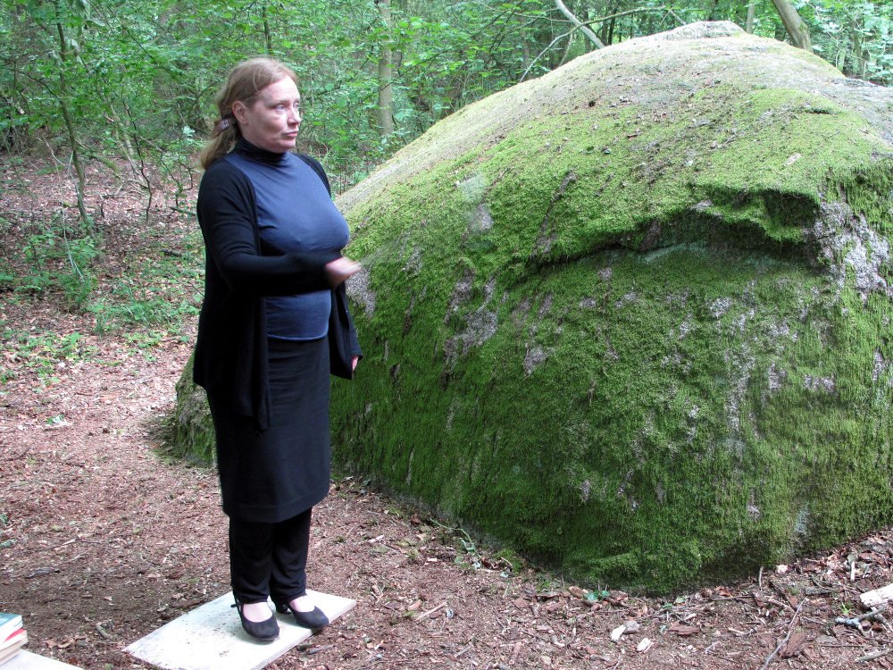Moose und Flechten. 2012. Performance am Blutstein bei Wutike, Prignitz. mit Simone Ahrend – Rezitation und Kunstaktion mit dem Publikum. gefördert von der LAG für politisch-kulturelle Bildung des Landes Brandenburg e.V.