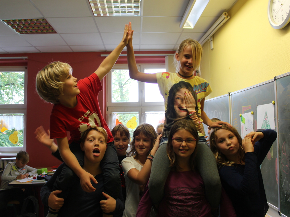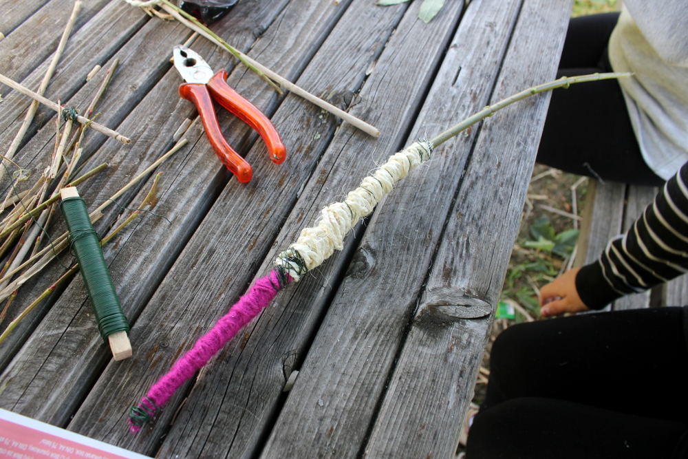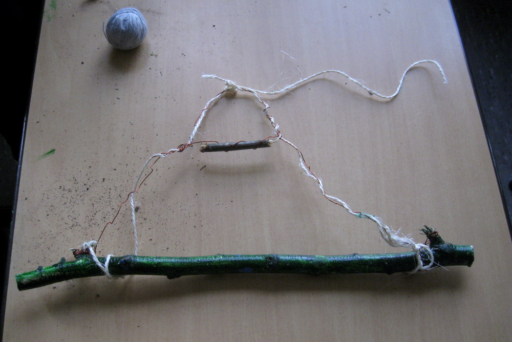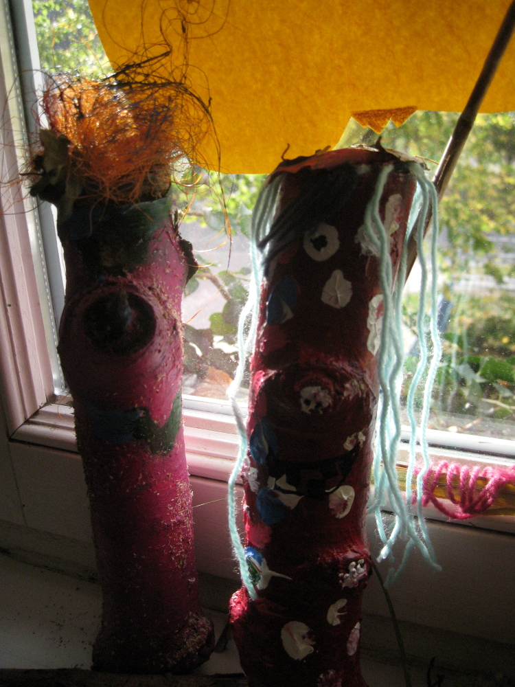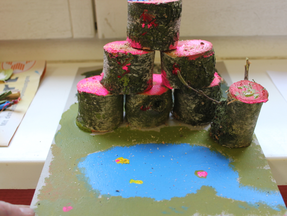 Es waren sonnige Herbsttage. Wir gingen in den Schulgarten und bauten Objekte mit allem, was wir fanden. Mutter Natur gab uns Stöcke, Zweige, Stengel, Blüten, Rispen, Beeren, Dolden, Federn, Blätter, Gras, . . . Wir benutzten nur Bindfaden, Schnur, Wolle, Draht, um das Material zu verbinden. Später machten wir im Klassenzimmer weiter. Da kamen Pappe, Papier, Klebstoffe und Farben hinzu. Es entstanden moderne, innovative Werke. Ein Mädchen aus der Klasse 5a brachte drei große geheimnisvolle Eier mit und baute dafür ein Nest, und ein Junge entwarf eine Schaukel für seinen Vogel. In der Klasse 5b baute ein Schüler eine HipHop-Natur-Göttin, die uns sehr beeindruckte. Ein paar Mädchen arbeiteten zusammen, schufen ein Objekt aus Blättern und Bonbonpapier und hielten einen Vortrag, um auf die Umweltverschmutzung aufmerksam zu machen. Zwei Freundinnen formten eine Felsenlandschaft mit klarem See.