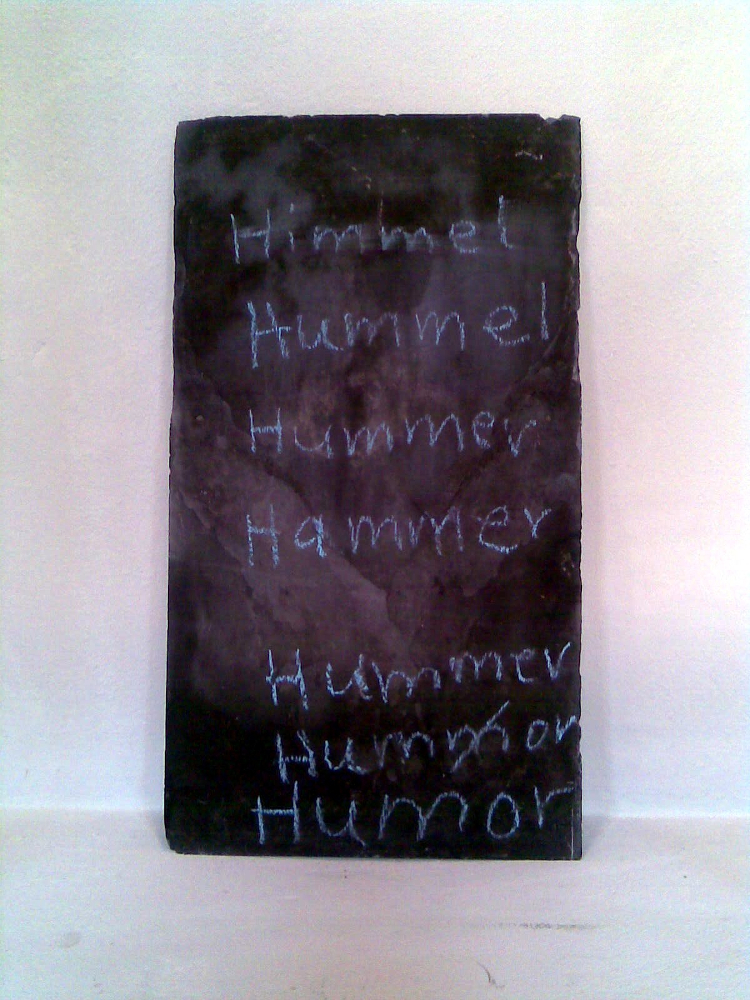 Himmel, Hummel, Humor. 2008. 25 x 46 cm. Kreide auf Schiefer.