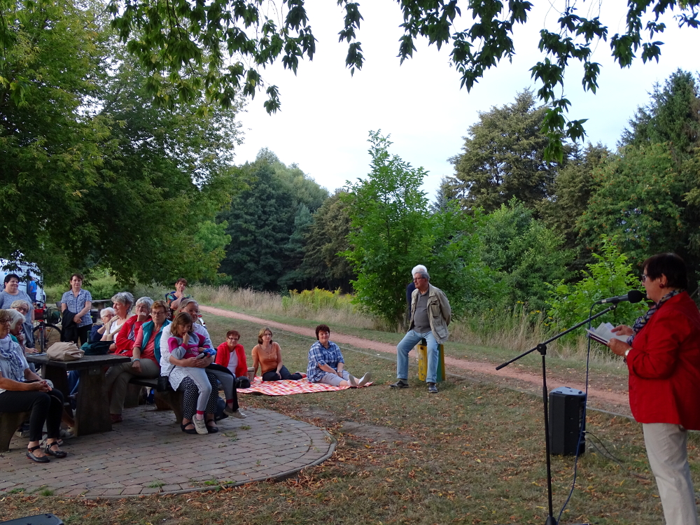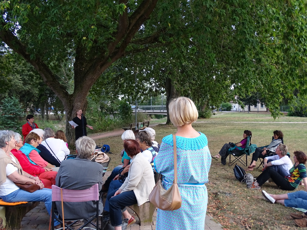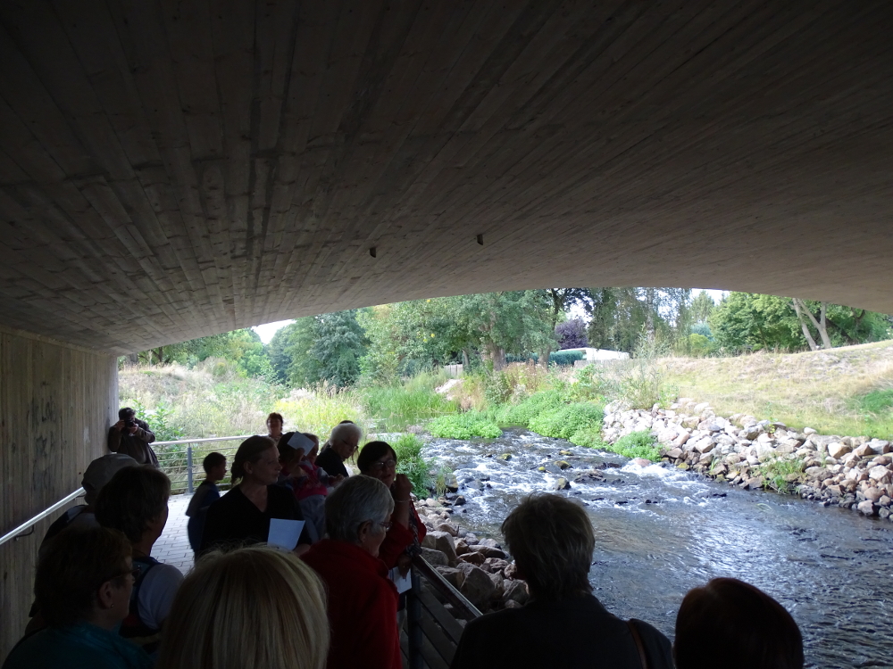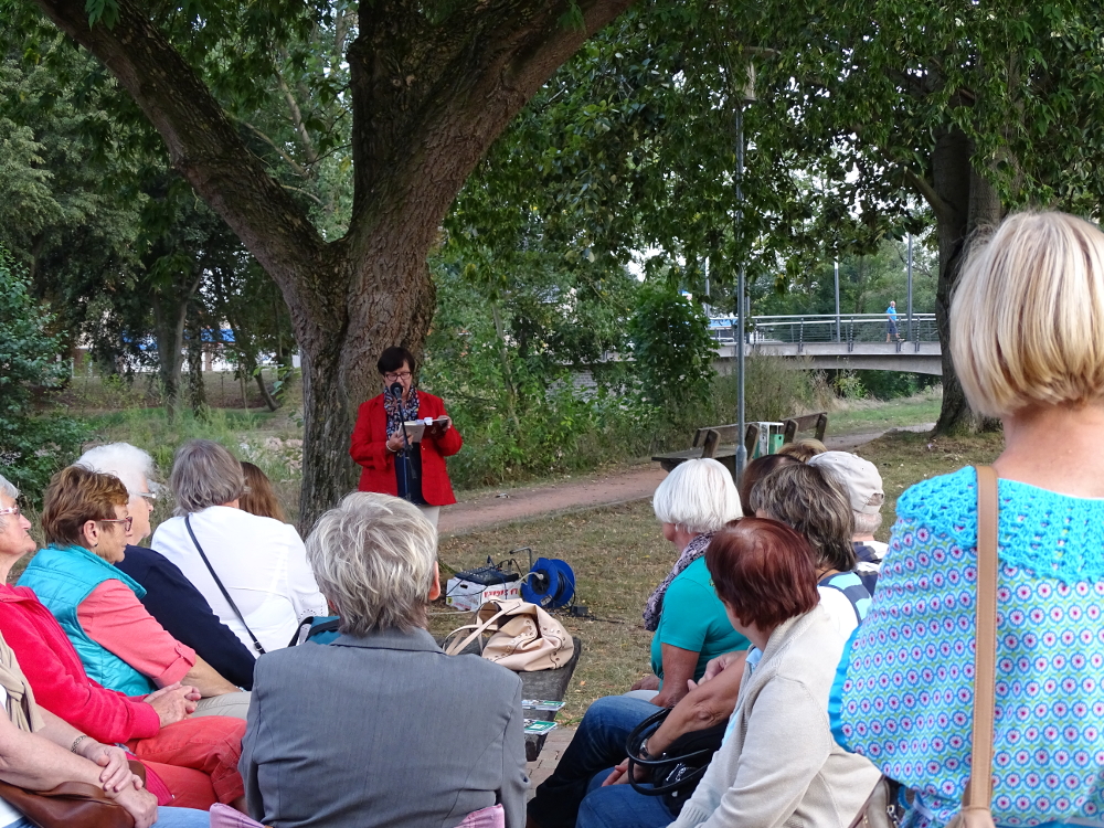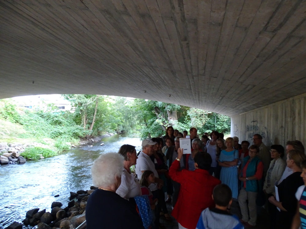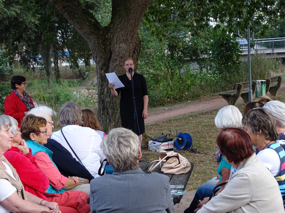 Unten am Fluss 2. 2016. Kyritz, an der Jäglitz. Reihe „Musikalische Lesungen“ im öffentlichen Raum in Zusammenarbeit mit der Stadt Kyritz, mit freundlicher Unterstützung der Bibliothek Kyritz, Marion Neumann – Rezitation. Fotos: Doreen Wolf und Katharina Kosak