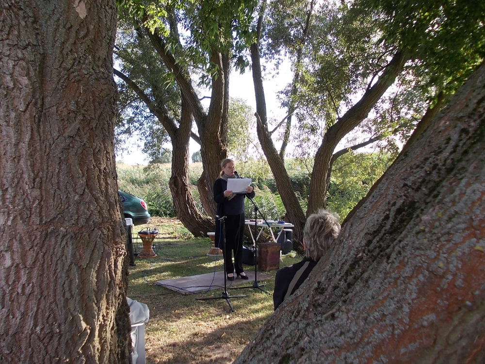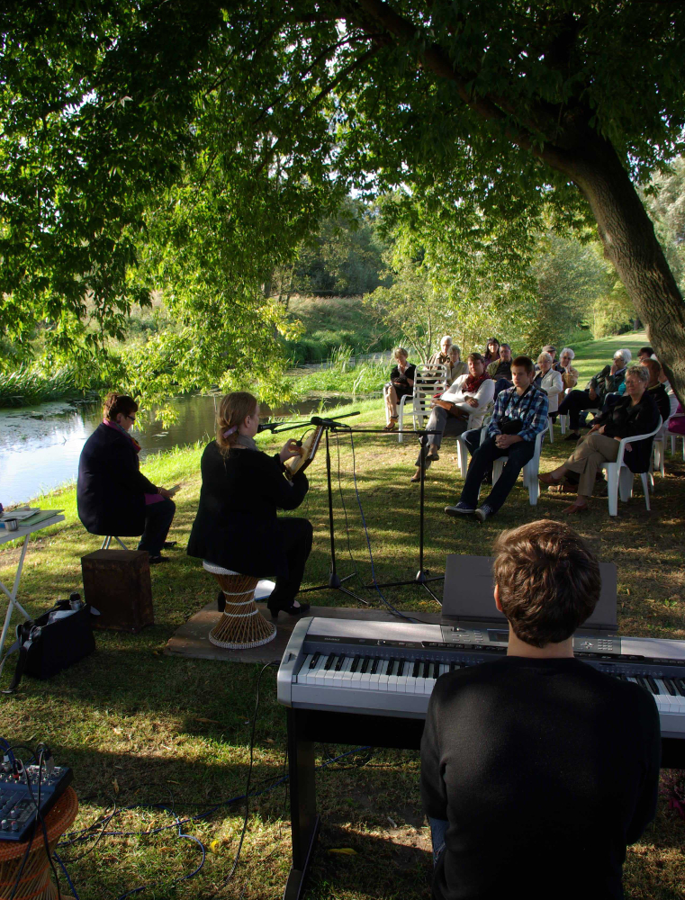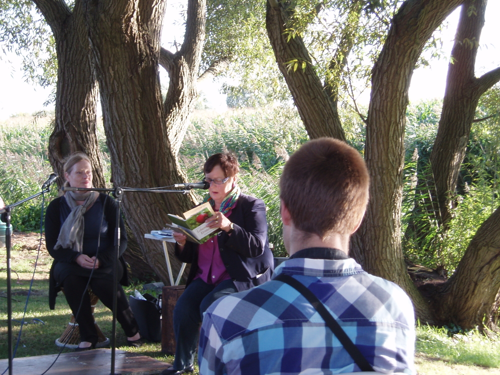 Unten am Fluss. 2012. Kyritz, Ufer der Jäglitz, Reihe Musikalische Lesungen, mit Marion Neumann – Rezitation und Johannes Conraths – Piano, gefördert von der Stadt Kyritz, mit freundlicher Unterstützung von Familie Neumann und der Bibliothek Kyritz. Fotos: Monika Lemke, Alexander Beckmann