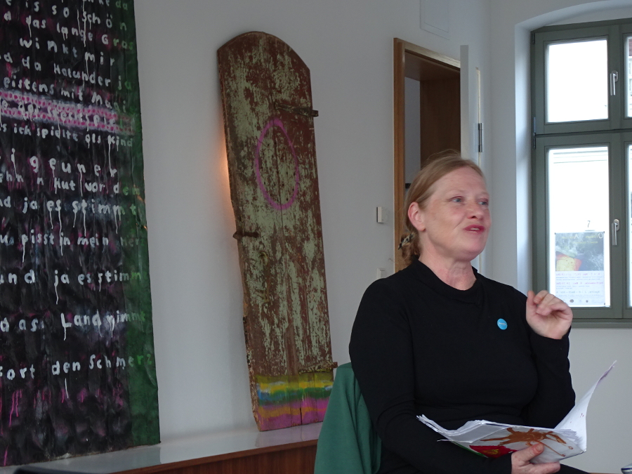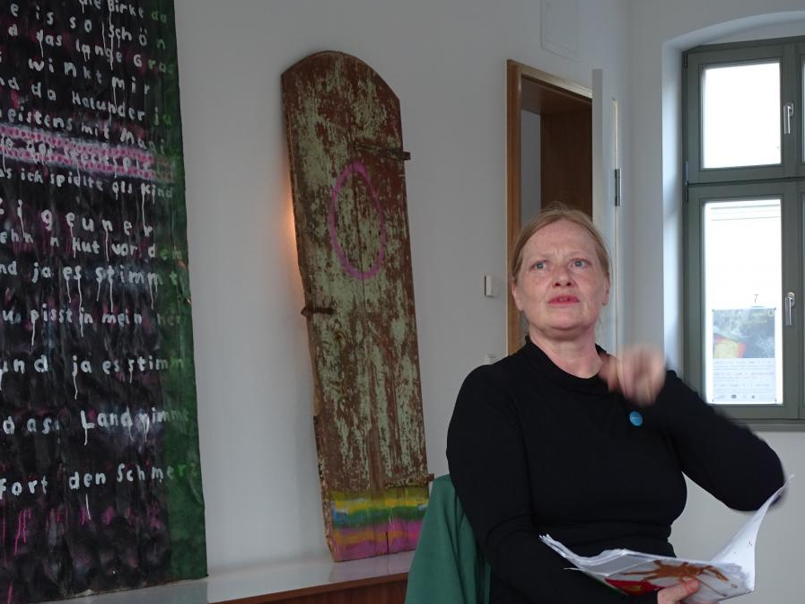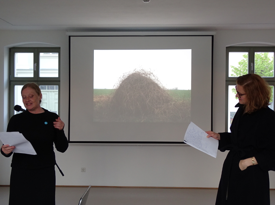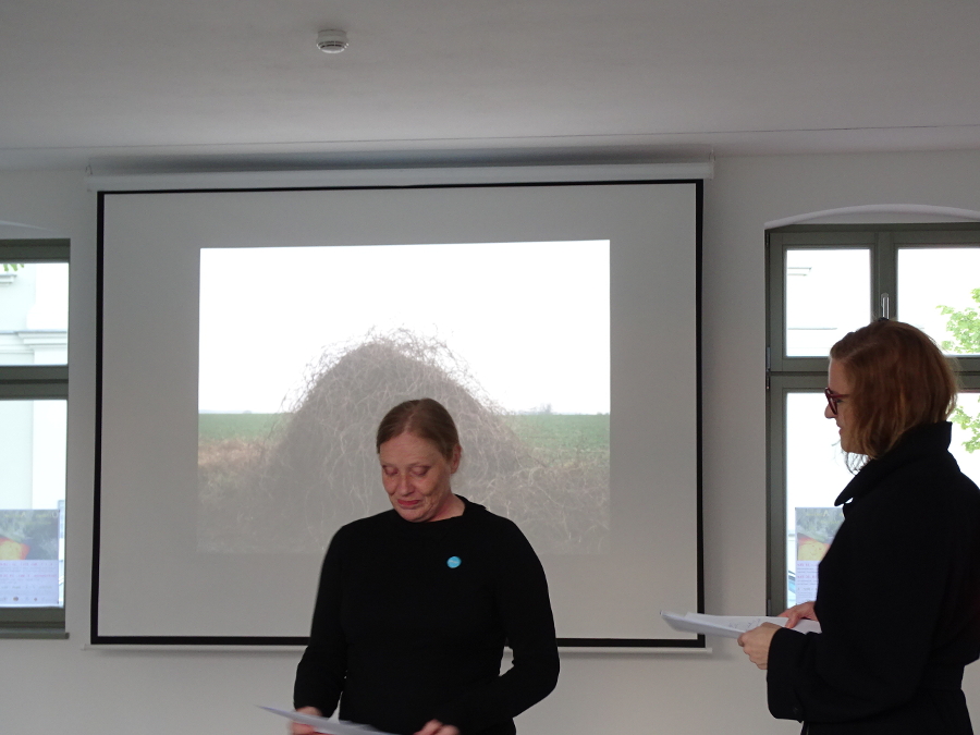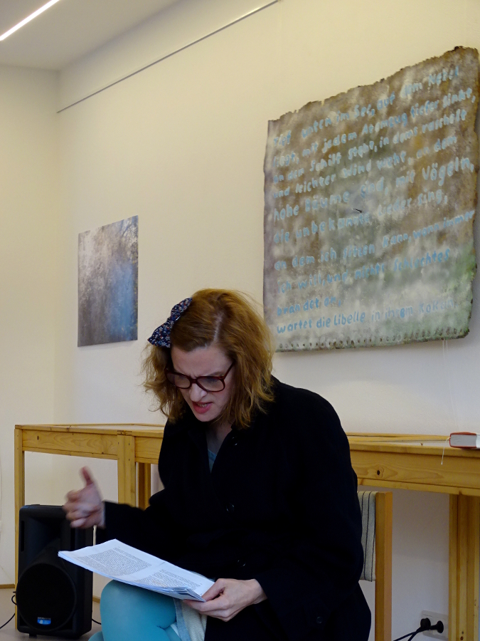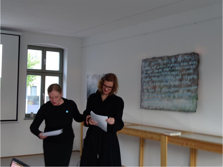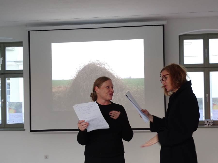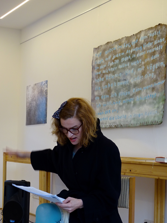 unterwegs (wie meine Arbeiten entstehen). 2017. Performance mit Fotoprojektion, gesprochener Dichtung und Geschichten, mit der Schauspielerin Inga Busch – Rezitation aus Büchern von Erica Jong. Kyritz, Klosterviertel. Temporäres Offenes Atelier. Offene Ateliers im Land Brandenburg. gefördert von der Stadt Kyritz. Fotos: Doreen Wolf
